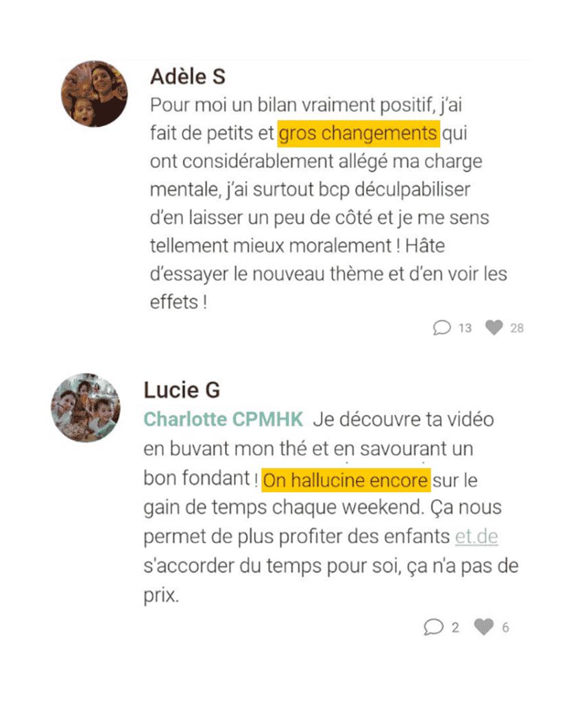 Tout au long du mois, la team CPMHK est présente dans les commentaires, pour te motiver et faire le point, ainsi que les autres Cool Parents ! Cette belle énergie collective, c’est la clé pour réellement se motiver à passer à l’action 🤫