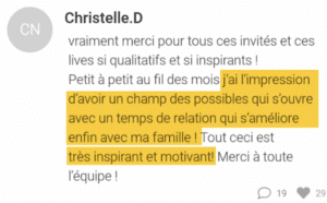 Les ateliers live sont sur la même thématique que le mini-coaching, mais on avance ensemble et en live ! On peut suivre l’atelier et le mini-coaching de façon indépendante. En juin et décembre, ce sont des ateliers de développement personnel, les Cool Parents adorent😍 !