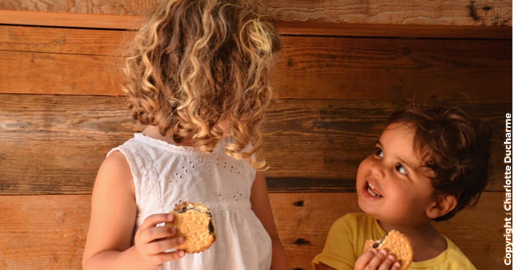 Quand je sentais qu’il y allait avoir de l’injustice dans l’air (surtout que le carré de chocolat, c’est le TRUC le plus désiré à la maison), j’aurais dû les inciter à trouver eux-mêmes une solution ! Au moment où Léon s’empare du chocolat, j’aurais dû le stopper : « Léon, regarde Joy, la pauvre, elle n’a pas de chocolat elle, comment on fait ? » J’incite l’enfant à tenir compte de l’autre et à trouver lui-même une solution pour l’autre. L’enfant se prend souvent au jeu, trop content qu’on fasse appel à ses idées ! C’est un réflexe qu’il est intéressant d’utiliser souvent, par exemple : « Si tu mets ton déguisement de princesse, ta copine elle, elle ne sera pas déguisée, comment on fait pour elle ? », et non seulement souvent ils trouvent ainsi leur solution, mais en plus cela devient petit à petit un réflexe pour eux de tenir compte de l’autre. Connaissant Léon pour avoir déjà vécu ce type de situation, il m’aurait dit : « Bah, on en prend un autre pour Joy dans le placard ». Et comme c’est lui qui aurait été à l’origine de cette idée, il y aurait eu peu de chance qu’il trouve cela injuste !